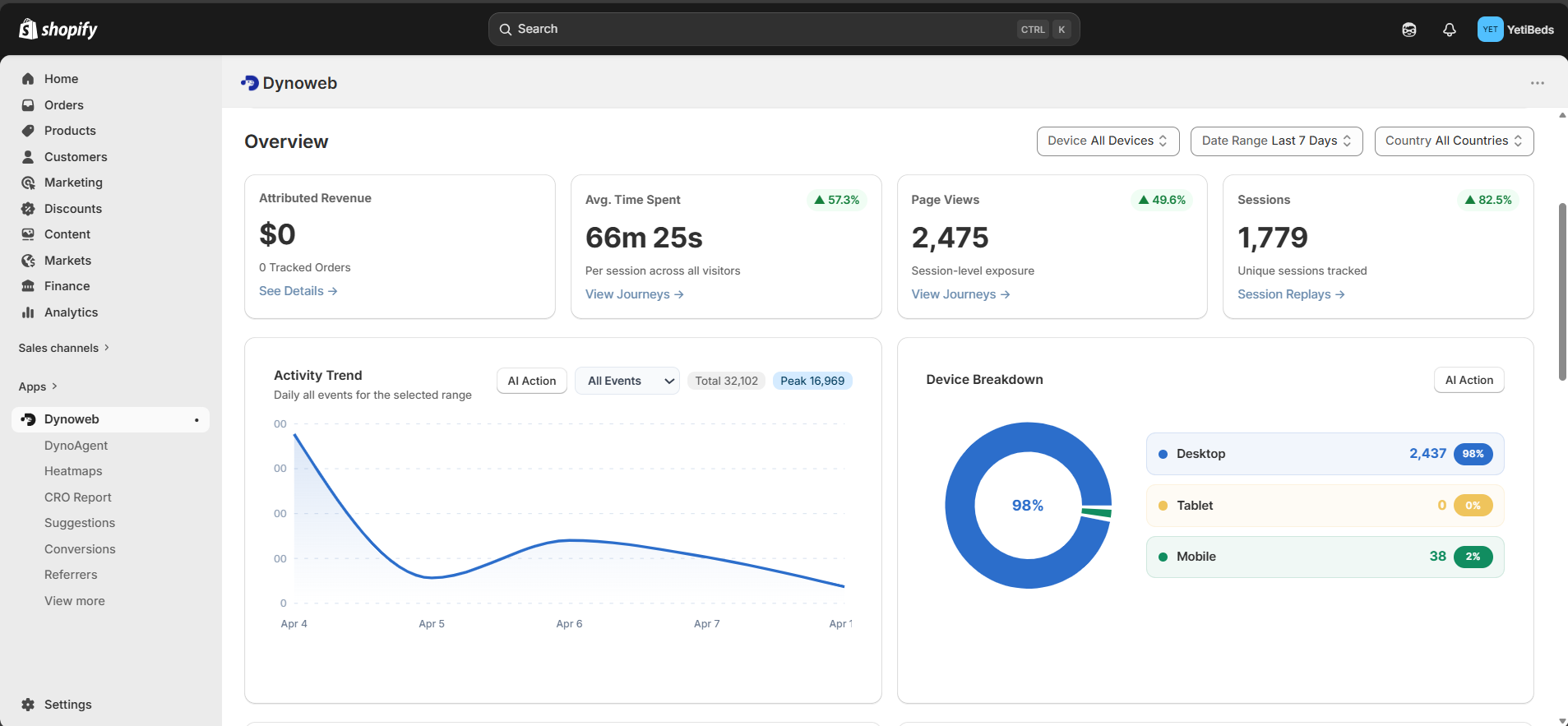 No developers. No complex setup. DynoWeb plugs directly into your existing Shopify theme and starts collecting data immediately.