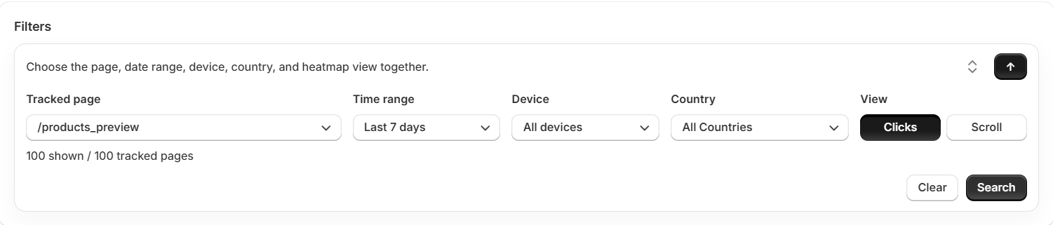 The best way to use Heatmaps is to start with an important page, usually a product page, collection page, landing page, or homepage.